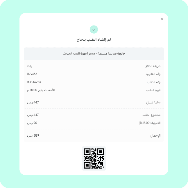 فواتير احترافية فورية: العميل يحصل على فاتورته الإلكترونية مباشرة بعد الشراء.