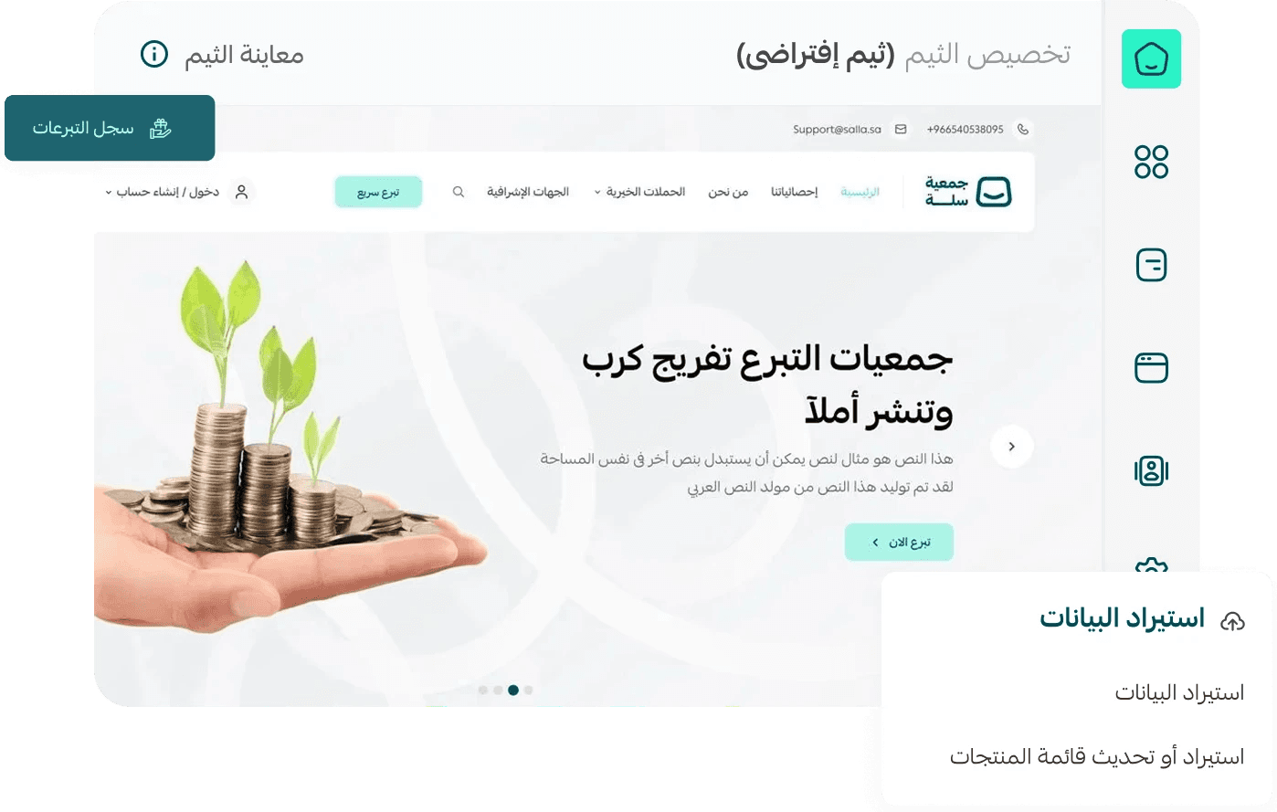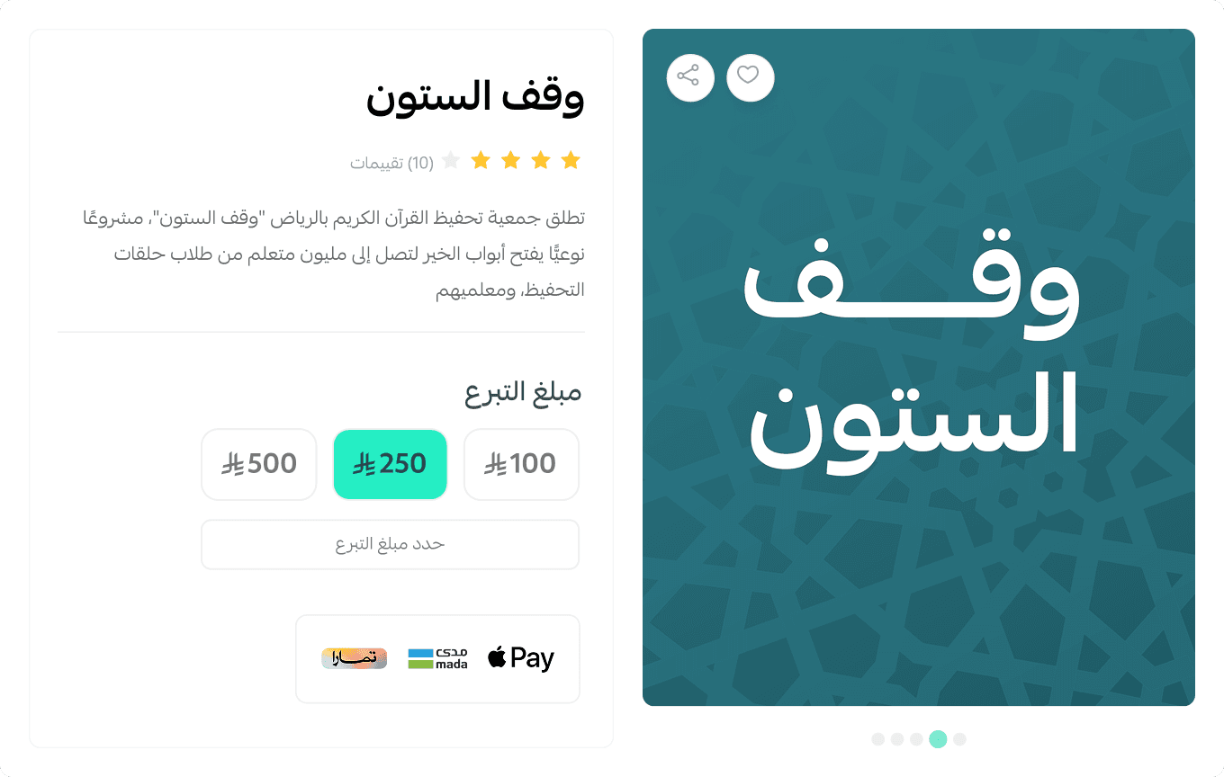 ابدأ بجمع التبرعات من خلال متجر إلكتروني مصمم لجمعيتك، بتجربة بسيطة، وسائل دفع متعددة، وتفعيل مجاني مدى الحياة
