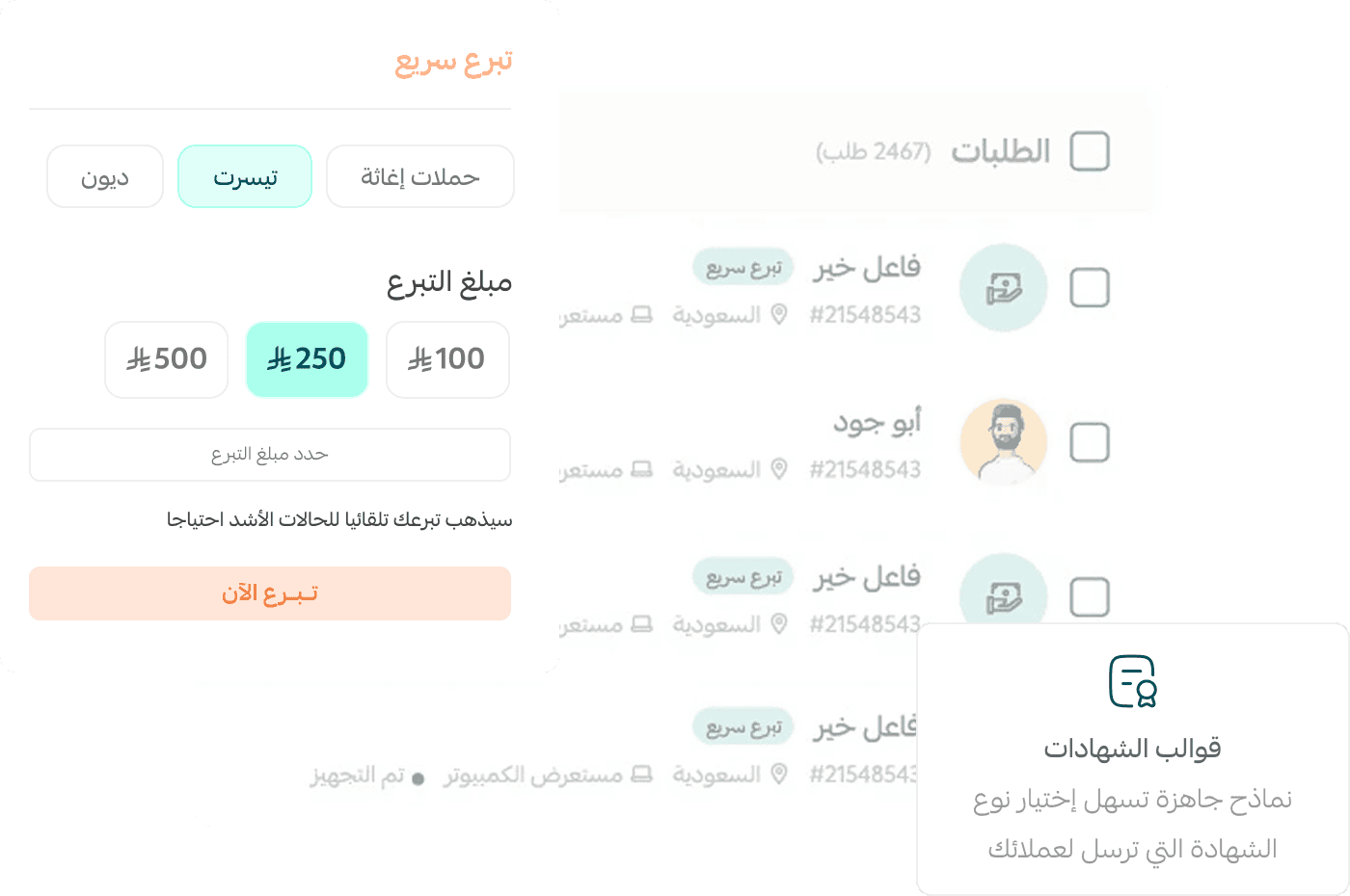 هل يمكن إضافة أكثر من قالب شهادة تبرع؟