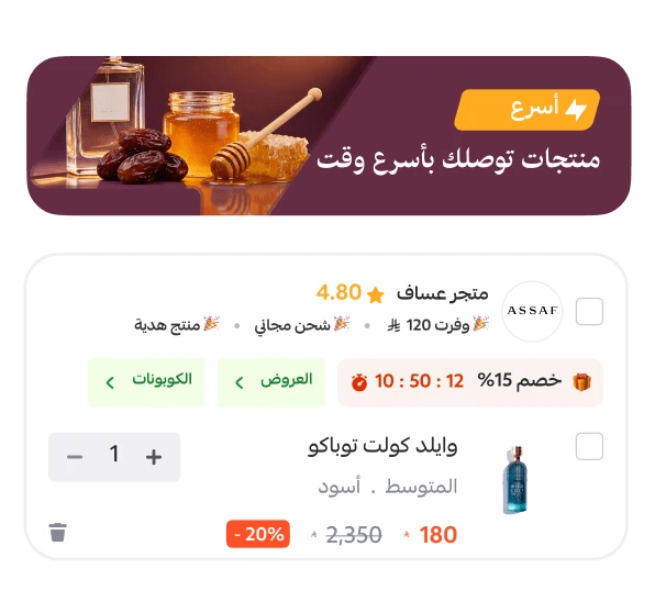 خيار الشحن السريع يتفعل تلقائيًا في متجرك منتجاتك تظهر ضمن محلي أسرع يتم الترويج لها عبر: الجوالات (إعلانات ممولة) التلفزيون ️ لوحات الطرق شاشات المولات والعميل يستلم المنتج اليوم أو بكرا. النتيجة: مبيعات أسرع + ظهور أعلى