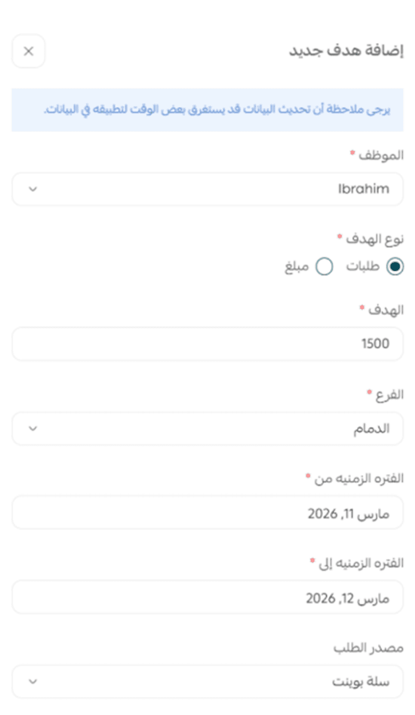 حدد أهدافاً واضحة وتابع الإنجاز لحظة بلحظة. حفّز فريقك بالأرقام وحوّل بيئة العمل إلى سباق مبيعات ممتع.